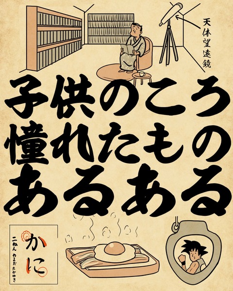 子供のころ憧れたものあるあるでござる 何なら今でもちょっと憧れてるでござる。(特に屋根裏部屋とか)みんなは子供のころ憧れてたものあるでござる?ーーーーーーーー「山田全自動のあるある日記」ではあるあるネタを毎日更新中でござる♪ぜひフォロー宜しくお願い致しますでござる〜 ... 2023/03/25