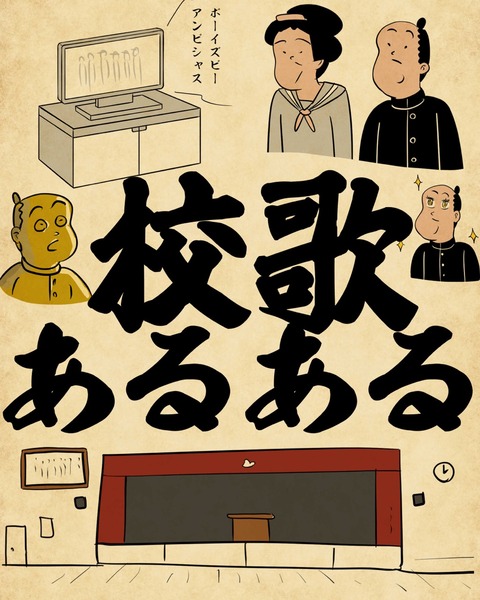 校歌あるあるでござる 「行(ゆ)かん」と言いがちでござる。ーーーーーーーー「山田全自動のあるある日記」ではあるあるネタを毎日更新中でござる♪ぜひフォロー宜しくお願い致しますでござる〜 ... 2023/03/21